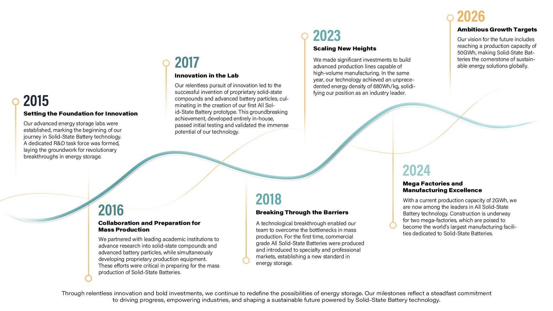 Our mission is clear: to drive transformation with smarter, safer, and more sustainable solid-state battery solutions. Starting with individual industries, we aim to revolutionize battery-powered products across sectors, ultimately advancing society through innovation.